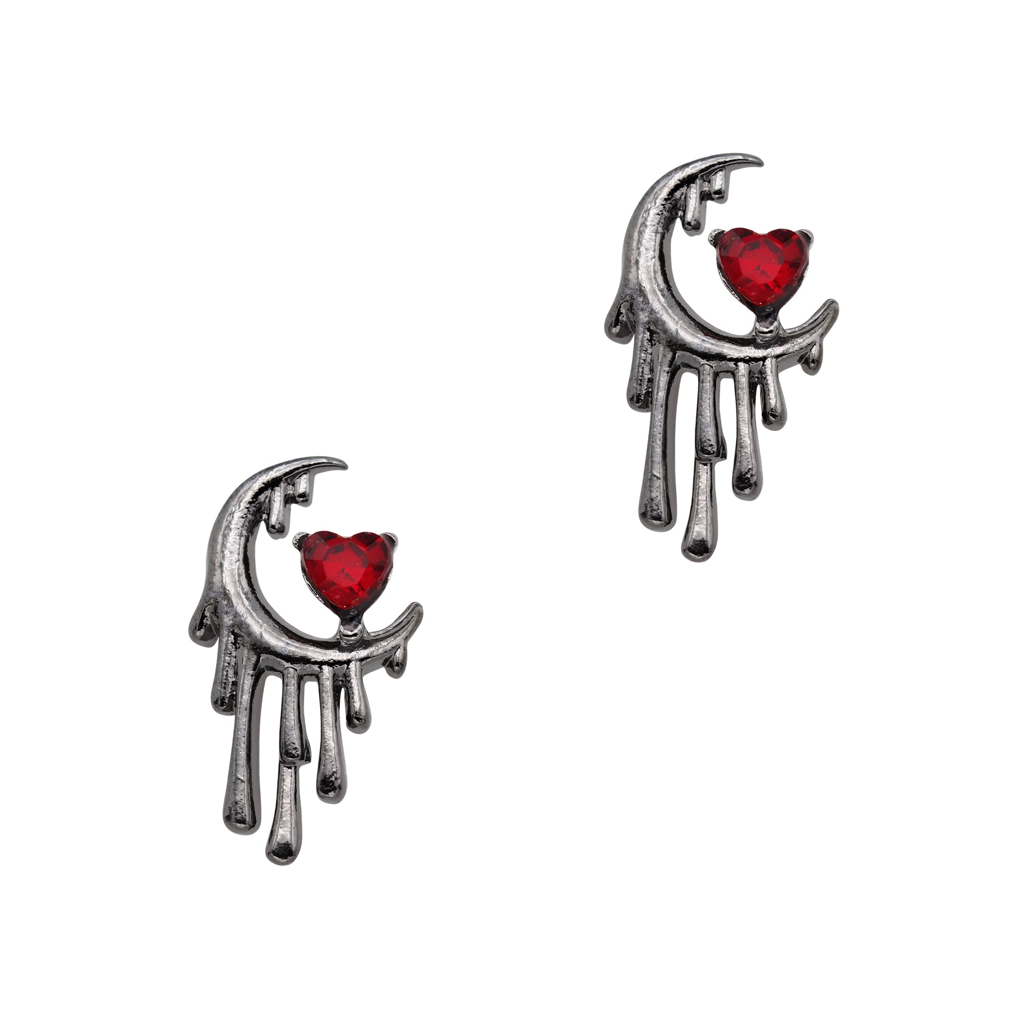 Adorn your nails with this melty dripping moon charm with a red crystal heart. This gunmetal charm is perfect for spooky Halloween or gothic Valentine's Day nail designs!