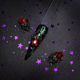 Get ready to steal the show this Halloween with our oversized black widow spider charm that features a striking ruby red rhinestone! This frightfully fun nail charm is a must-have for your spooktacular nail designs.