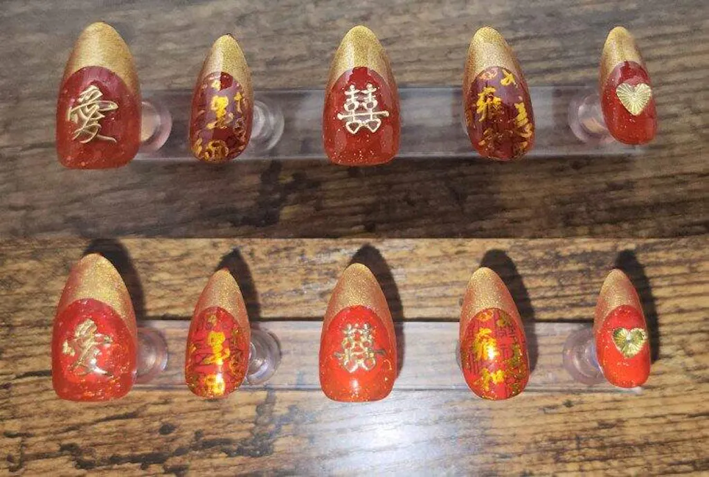 This delicate Chinese character 愛 (pronounced "Ai") nail charm combines the 2 Chinese characters "heart (心)" and "friend (友)" to form love! Wear this on your nails to show your love for your friends, family, and loved ones!