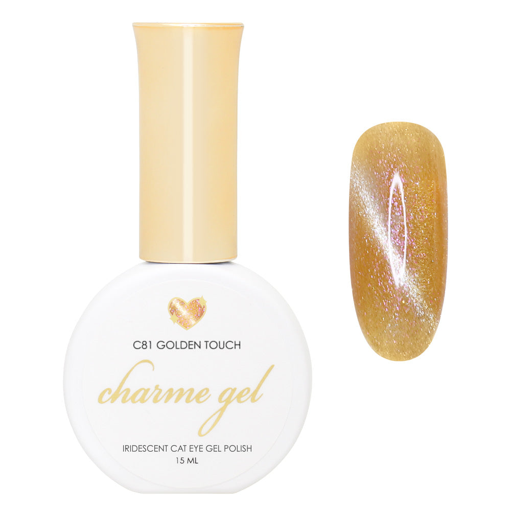 C81 Golden Touch - Luxurious gold shimmer paired with subtle pink and fuchsia iridescent sparkles, this ritzy cat eye gel polish will surely give your nails that special golden touch!