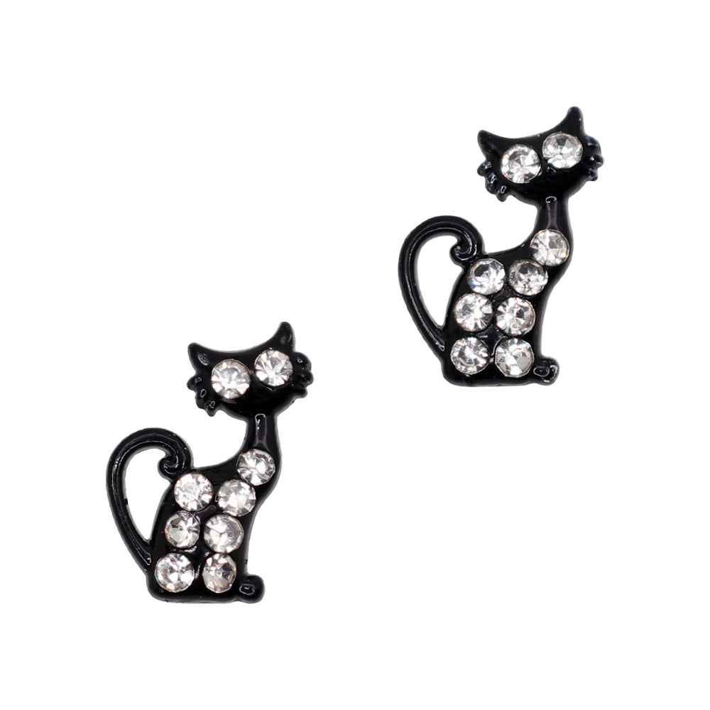 Add a sparkling touch of feline charm to your manicure with this black cat nail charm. Adorned with dazzling rhinestones, the sleek black cat design is both playful and elegant, making it a perfect accent for Halloween nails or for showing off your love of cats year round.