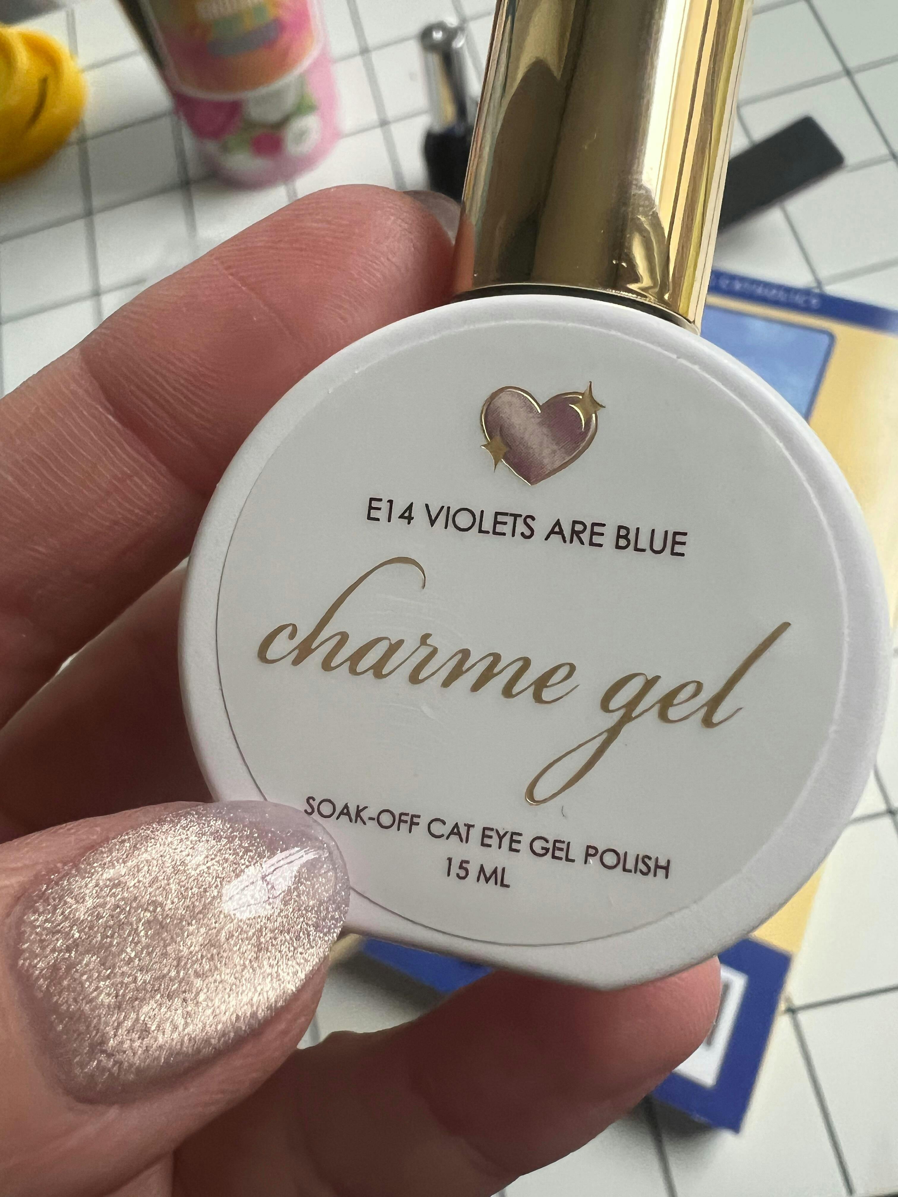 E14 Violets are Blue - A delicate pastel purple magnetic gel polish infused with a golden cat eye shimmer. Its soft lavender hue captures the essence of fresh blooms and gentle breezes, adding a touch of elegance and renewal to your look. Whether you're embracing a sophisticated, refined style or a whimsical, dreamy aesthetic, this shade brings the magic of spring to your nails.